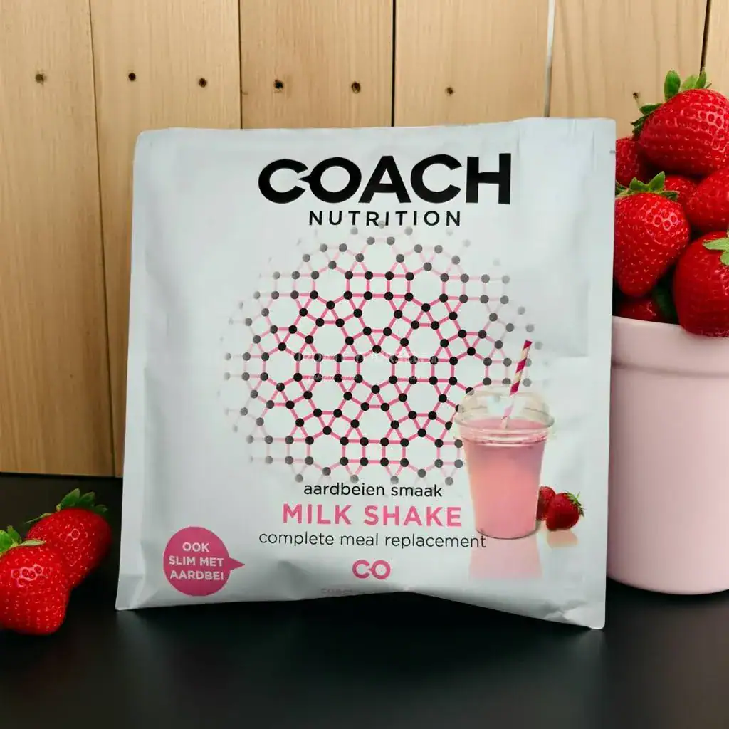 Volwaardige maaltijdvervangende shake melk-aardbei voor gewichtsbeheersing. Handige 42,5 g sachets, goed oplosbaar in water.